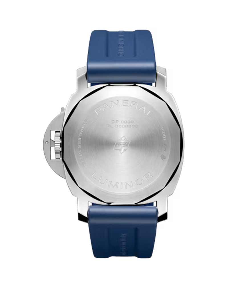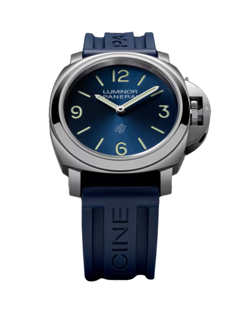 Movement Hand-wound mechanical, P.6000 calibre, 15 ½ lignes, 4.5 mm thick, 19 jewels, 21,600 alternations/hour. Incabloc® anti-shock device. Power reserve 3 days, one barrel. 110 components. Functions Minutes , Hours. Case Diameter 44mm, polished steel. Back Brushed steel. Dial Blue sun-brushed with luminous Arabic numerals and hourmarkers. Water Resistance "10.0 bar (~100.0 metres)". Strap and Buckle- Strap: Caoutchouc dark blue, STD, 24/22, BA Buckle type: Trapezoidal brushed steel, 22mm
